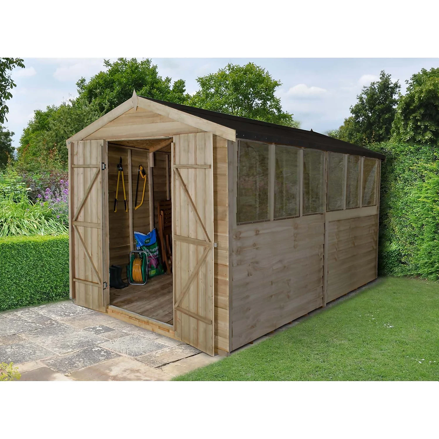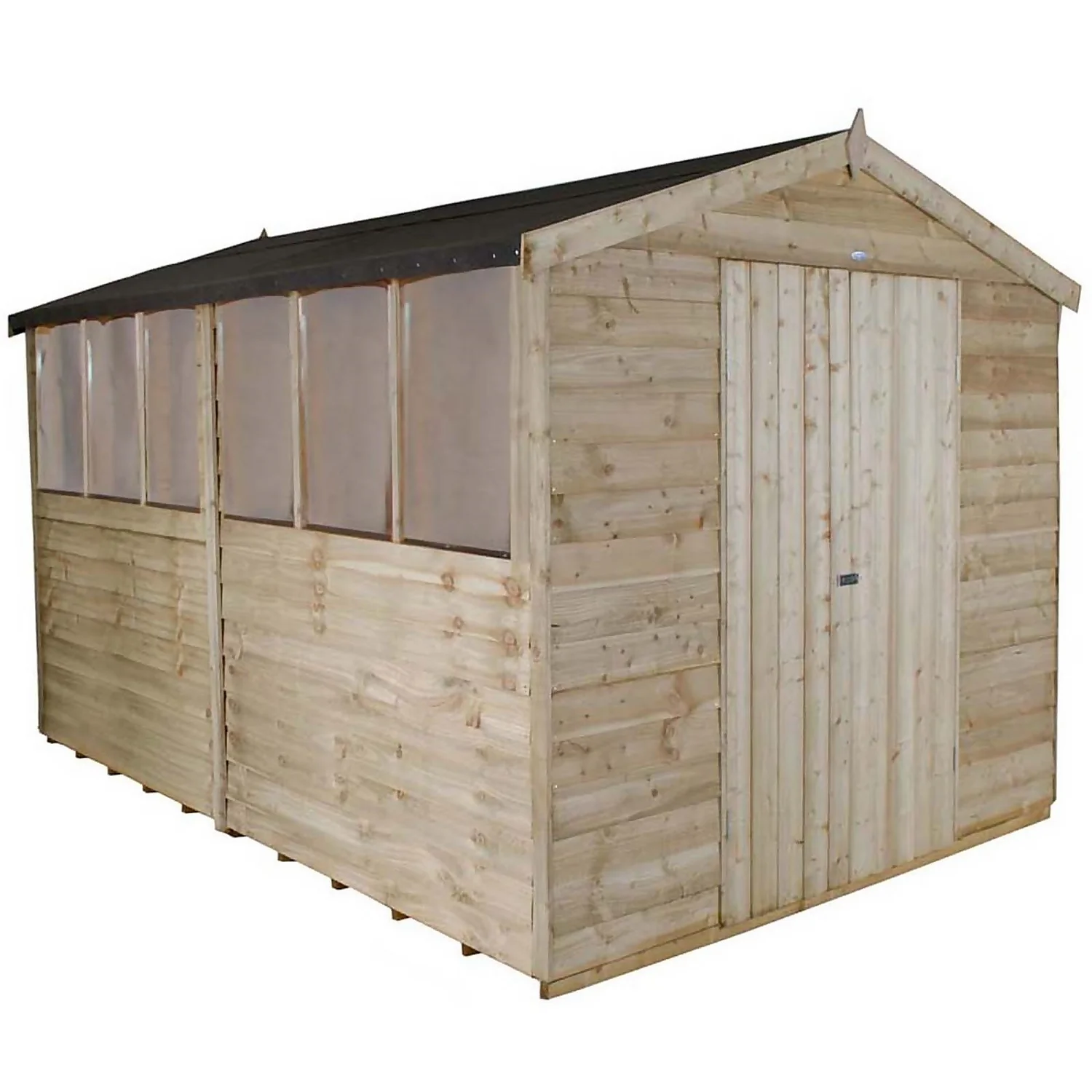 12x8ft Forest Wooden Overlap Pressure Treated Apex Shed -incl. Installation