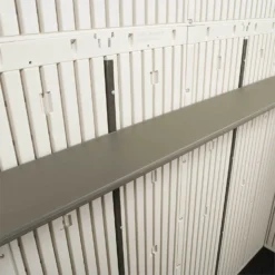 Lifetime’s 8-foot wide outdoor storage sheds are the perfect solution to your storage needs. Built with durable, dual-wall high-density polyethylene, our sheds are steel-reinforced and low-maintenance. With various features including shatter proof windows, skylights, custom shelving, and much more, a Lifetime shed is the perfect addition to your backyard.
